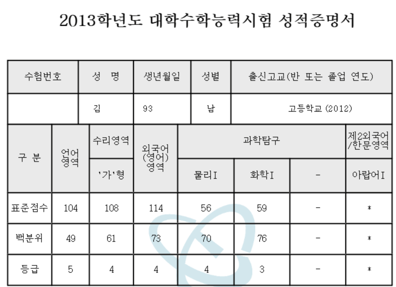 아쉽게도 첫 번째 수능 성적표는 공개가 불가능하나, 워낙 충격적인 성적이라 아직도 등급이 기억납니다.